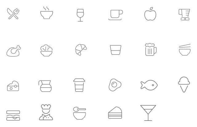 Icons are using the Fa-Thin class from Font Awesome. These can be downloaded as vectors from Font Awesome or added as a class in HTML. Colors are silver or white.